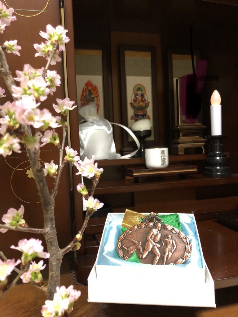 大会終わって、ちょっと帰省して来ました^ ^ 昨年亡くなった最愛の爺ちゃんに 花園の報告をしてくれました メダルとか貰えるんですね^ ^ 嬉しいご褒美です^ ^ 天国でお爺ちゃんも喜んでくれているでしょう^ – ^