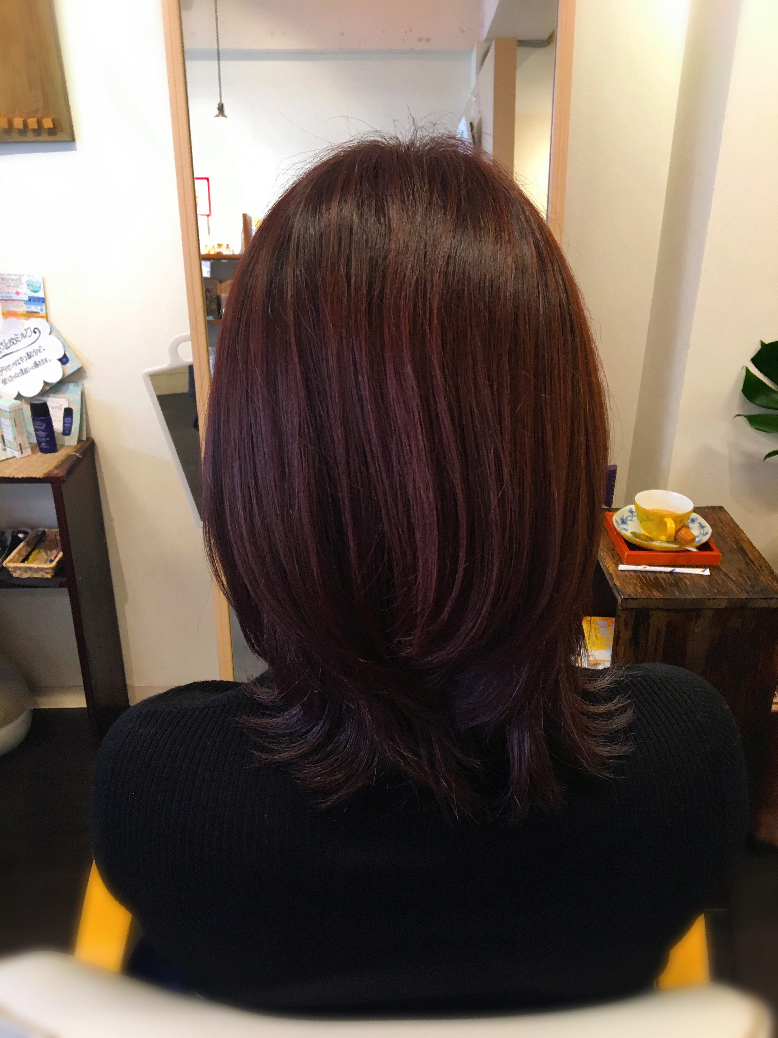 今日のカラーは、「少しのトーンダウン」です。 前回のカラーが約2ヶ月前。 そこから退色して明るくなってしまった髪色を、お仕事の関係でトーンダウンをしなくてはなりませぬ(o´∀`o)ノ そしてそして。 いろいろな相談の結果、 「ピンクかわいい♡」 という結論になり、染めましたゼ(๑✧◡✧๑) キレイです。。。。。。。☆ 退色して毛先もパサっと見えてたのですが、ツヤツヤ、ウルウルです〜(*´...