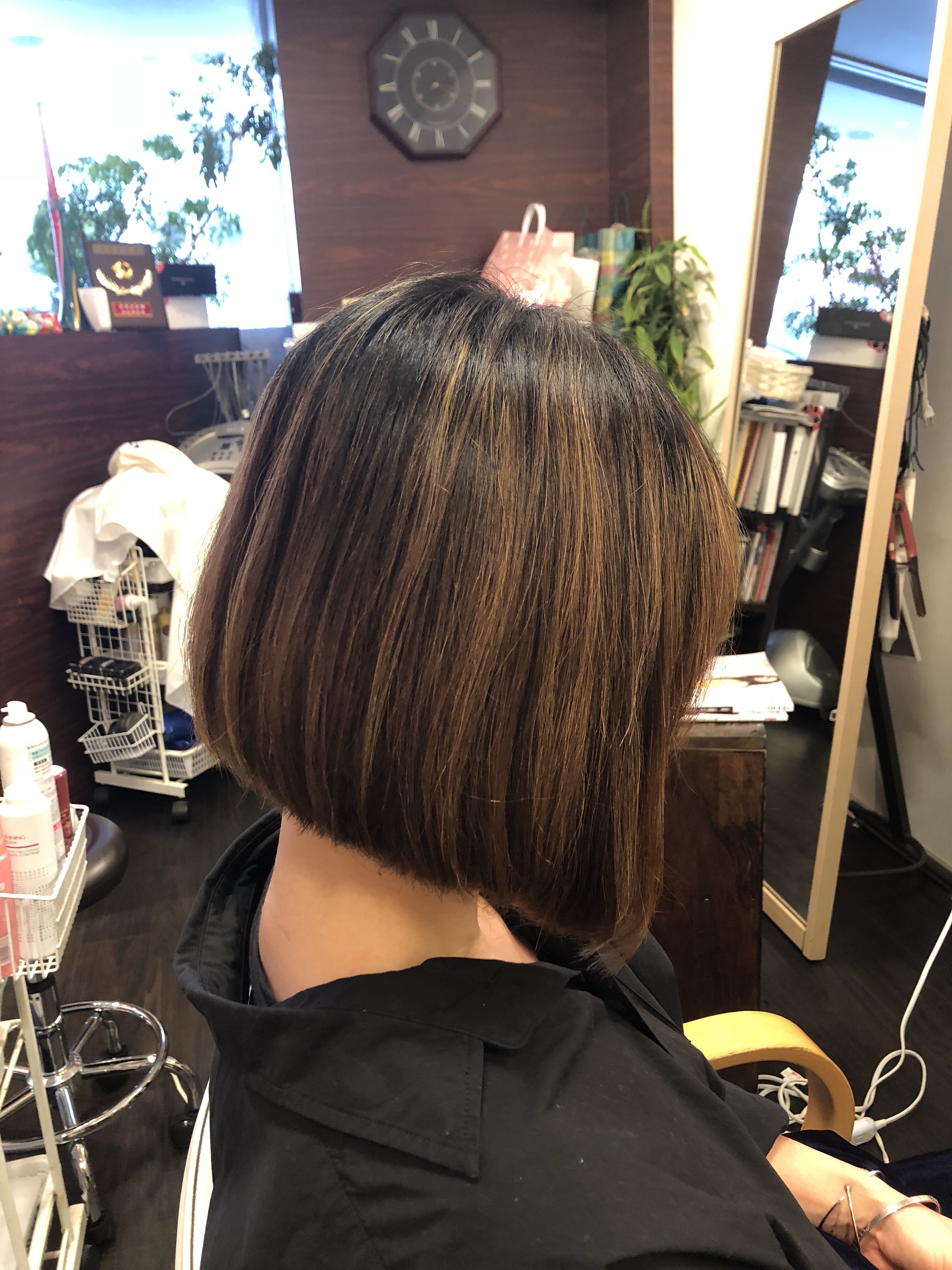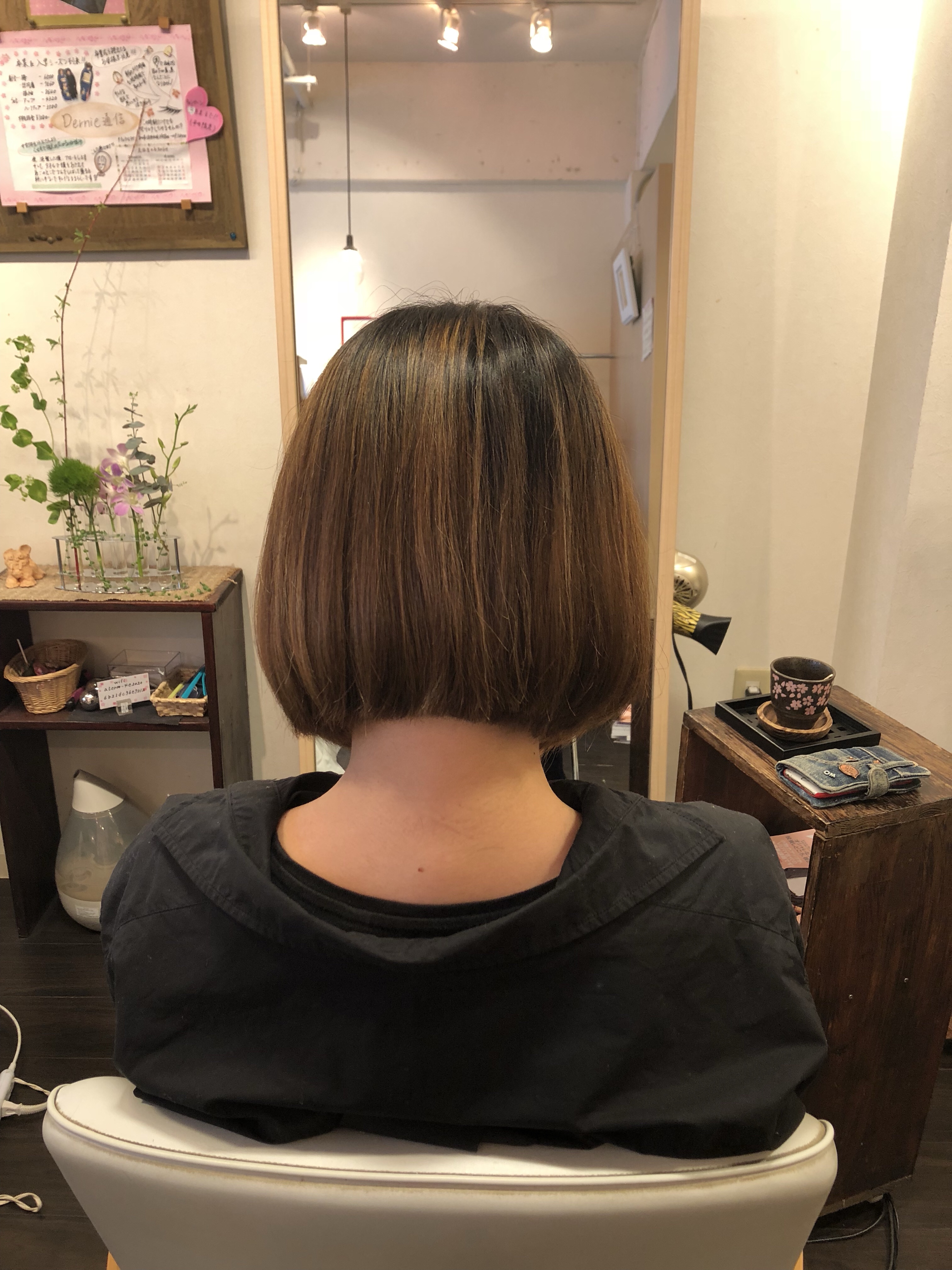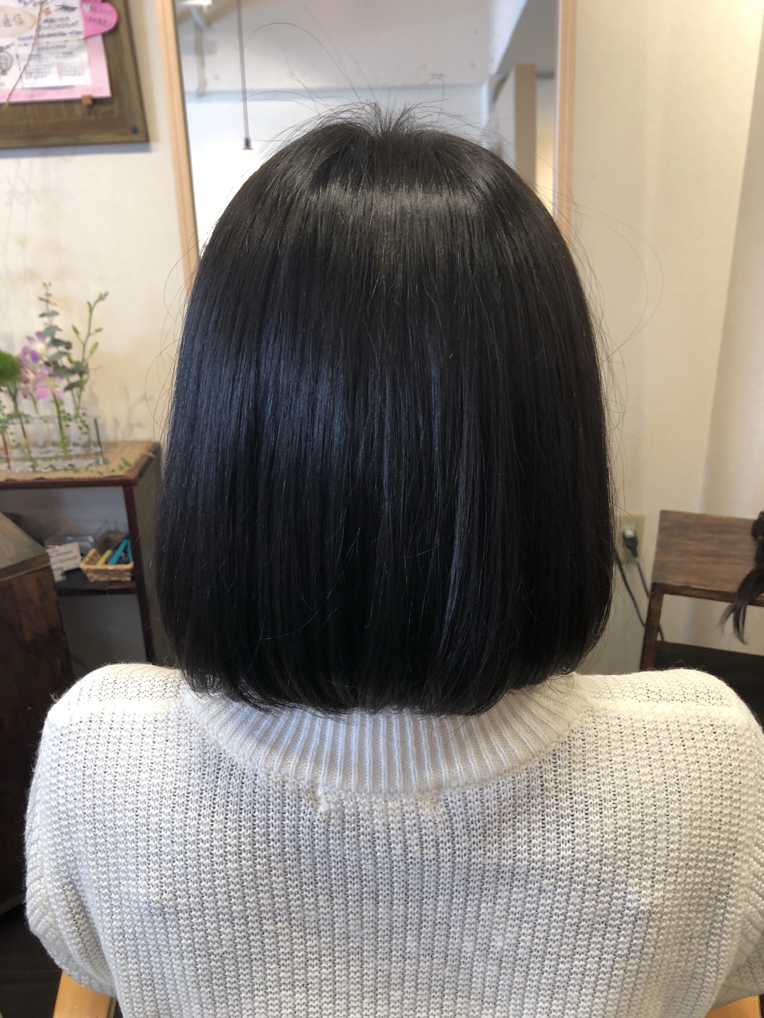 軽いよりも重さのあるボブ 少し癖があり 少し白髪あり 襟足うきぐせ少しあり ぼぶで収めて、ブロー仕上げでお願い致します!