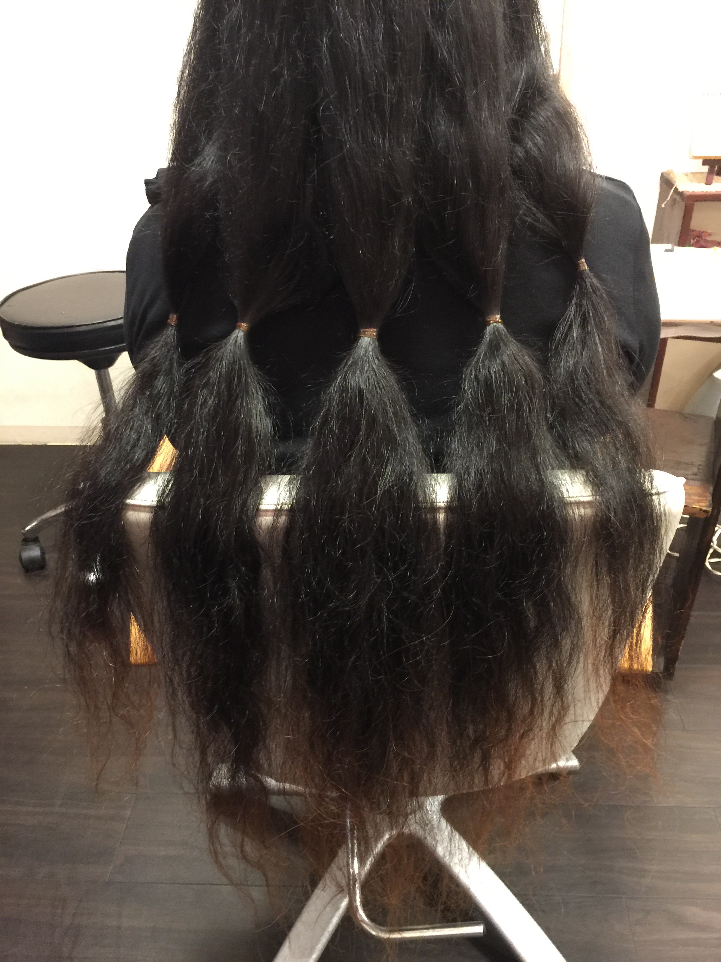 本当に最近、巷でも話題になってきている気がします! 今回ご協力いただいた方は、中学生の女の子です!! 最近はずっとカットをしていなくて、中学生になったら切るつもりだったそうです(p*’v`*q) でも短くなりすぎるのは少し抵抗があるみたいだったので、長さが十分あったので仕上がりは肩下くらいでさせてもらいました( *´艸`) (今回、アフターを写真に撮るのを忘れてました...