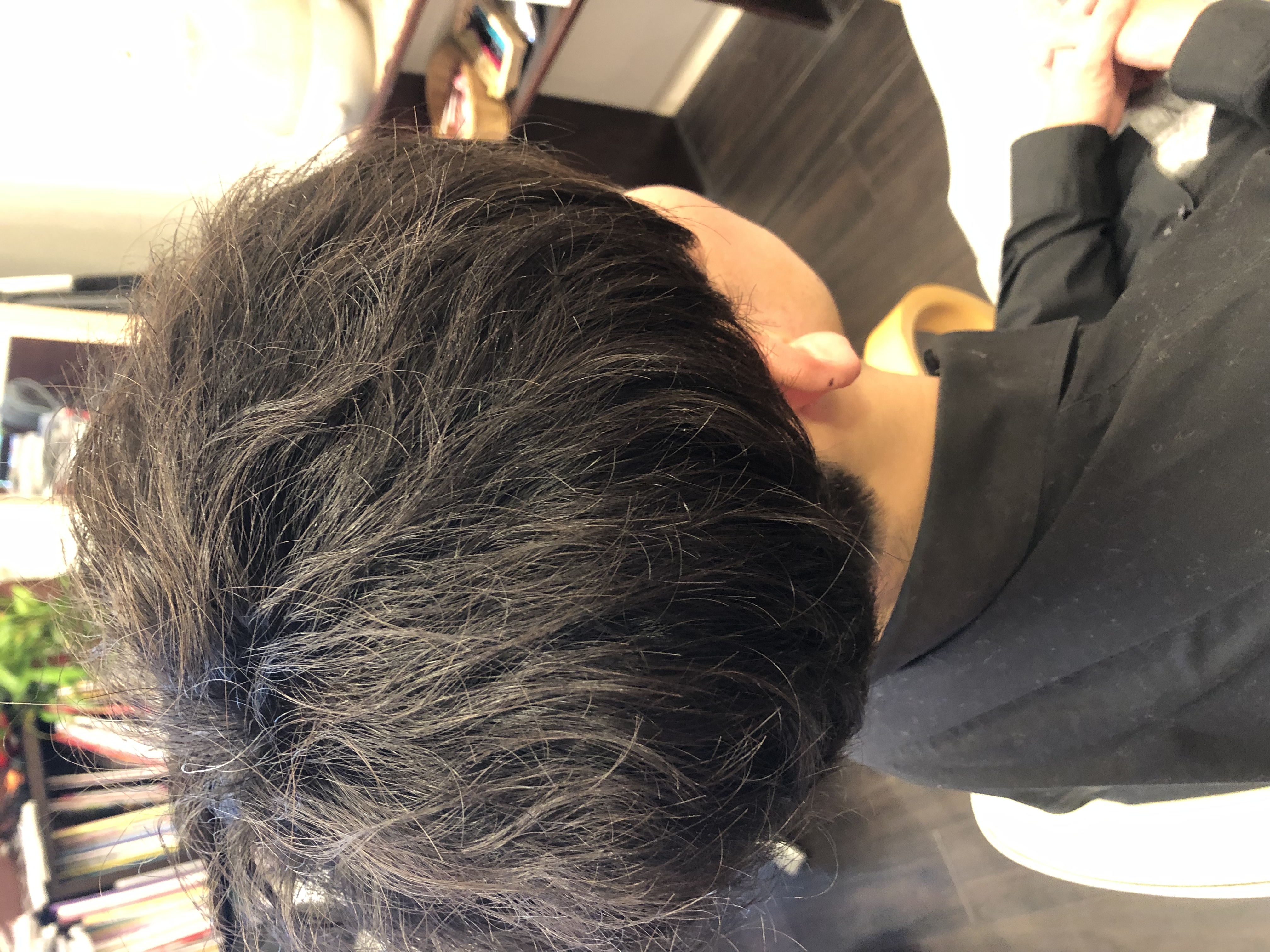 硬い毛質の方で、短くすると動きが出ずらいので少し伸ばして、パーマをかけながら 落ち着く長さまで伸ばしましていただきました! ウエーブを出すパーマではなく 毛先に軽い動きが出る質感で、、、