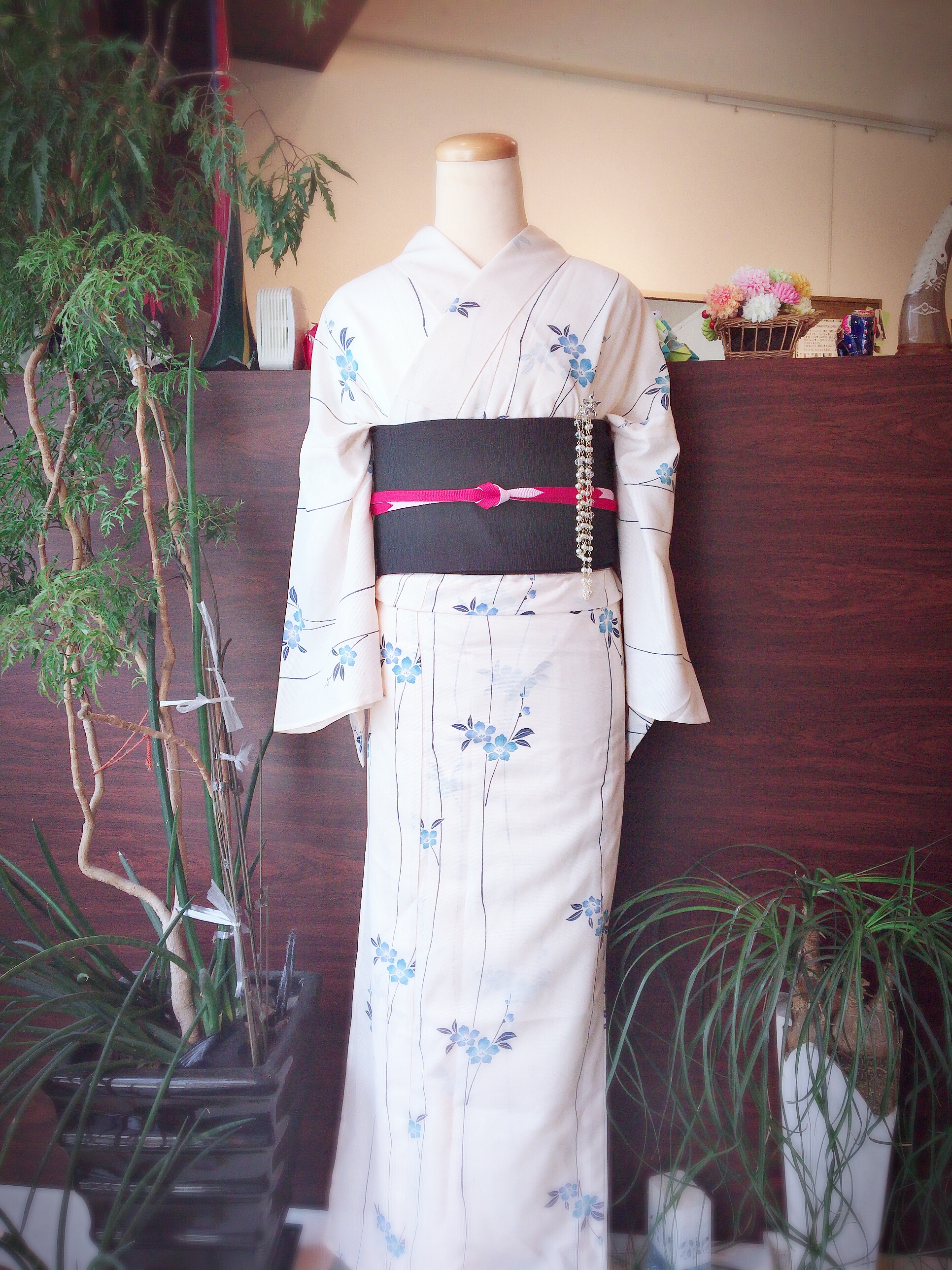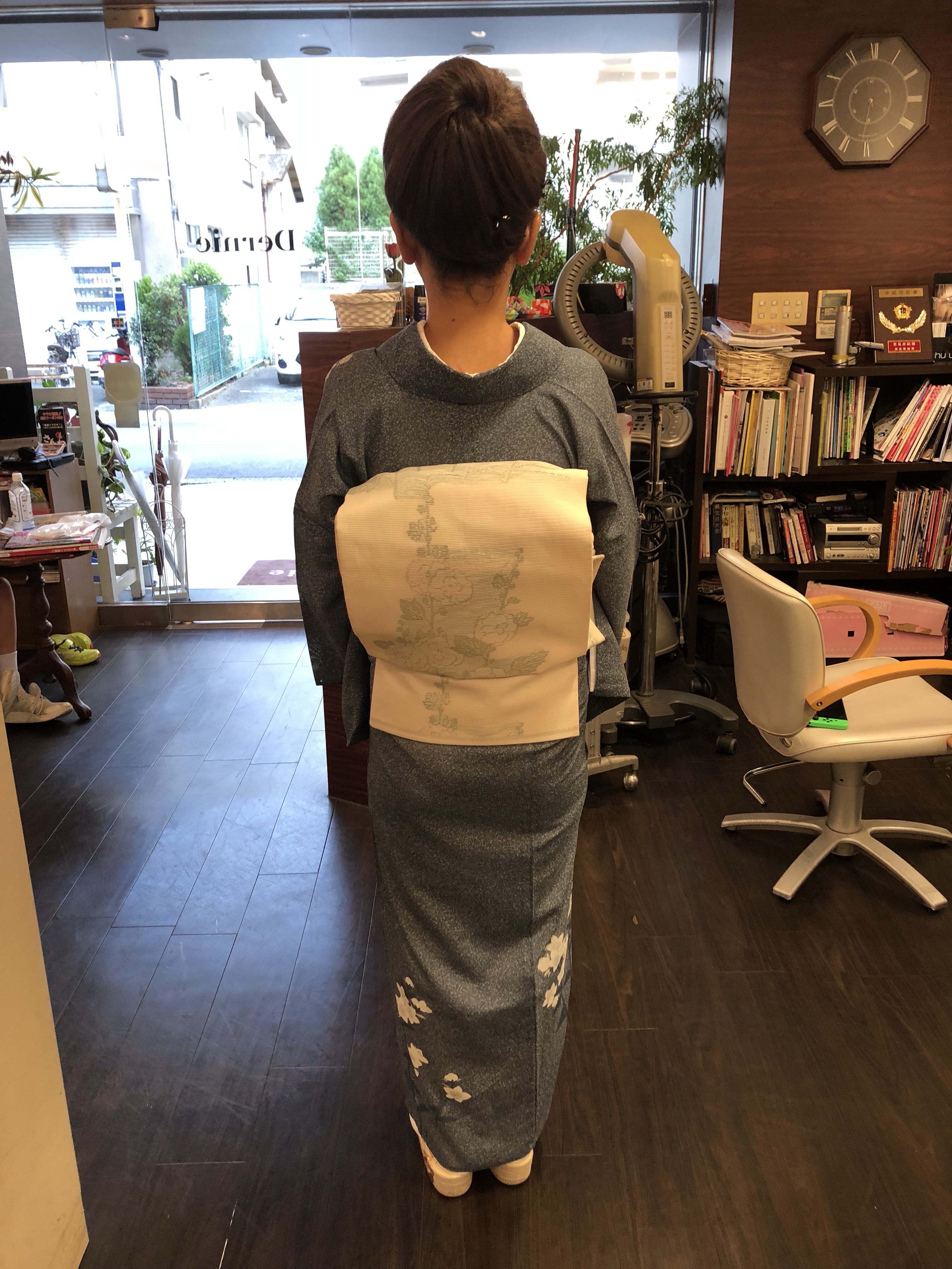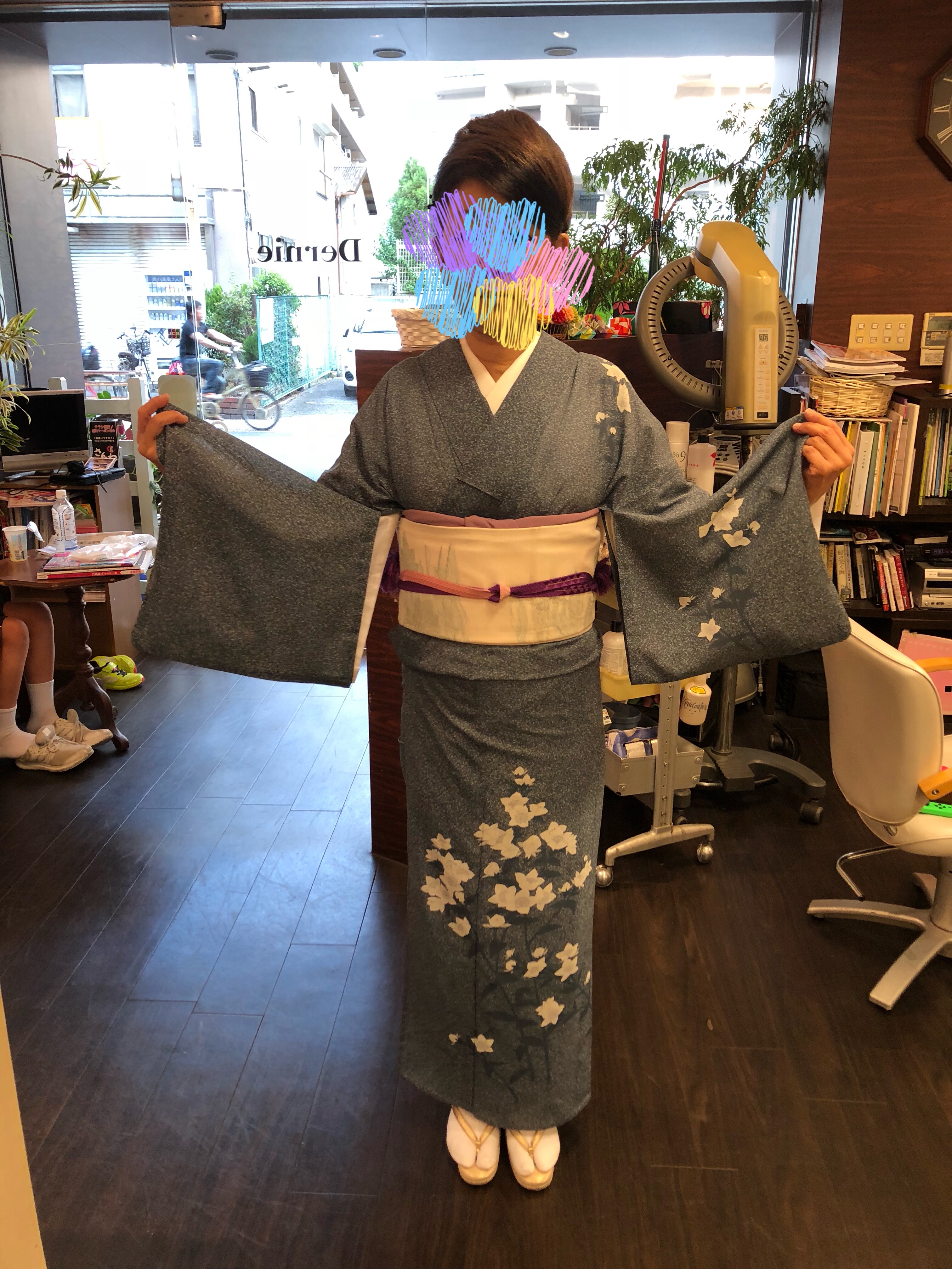 梅雨がついにあけましたね。 西日本では大雨で災害が大きくなっています。 気温も真夏日のように暑くて、被災地の方の体調も気がかりです。 くれぐれも皆さま体調には気をつけてくださいませ。 さて、 いつもお店に飾っている着物を夏バージョンで浴衣にしてみました!! 涼しげな感じですよね〜。。 最近は若い子も浴衣を着てお祭りに行ったりするそうですし、和服ブームですね♪ まだまだ着付けの予約を受付中です(...