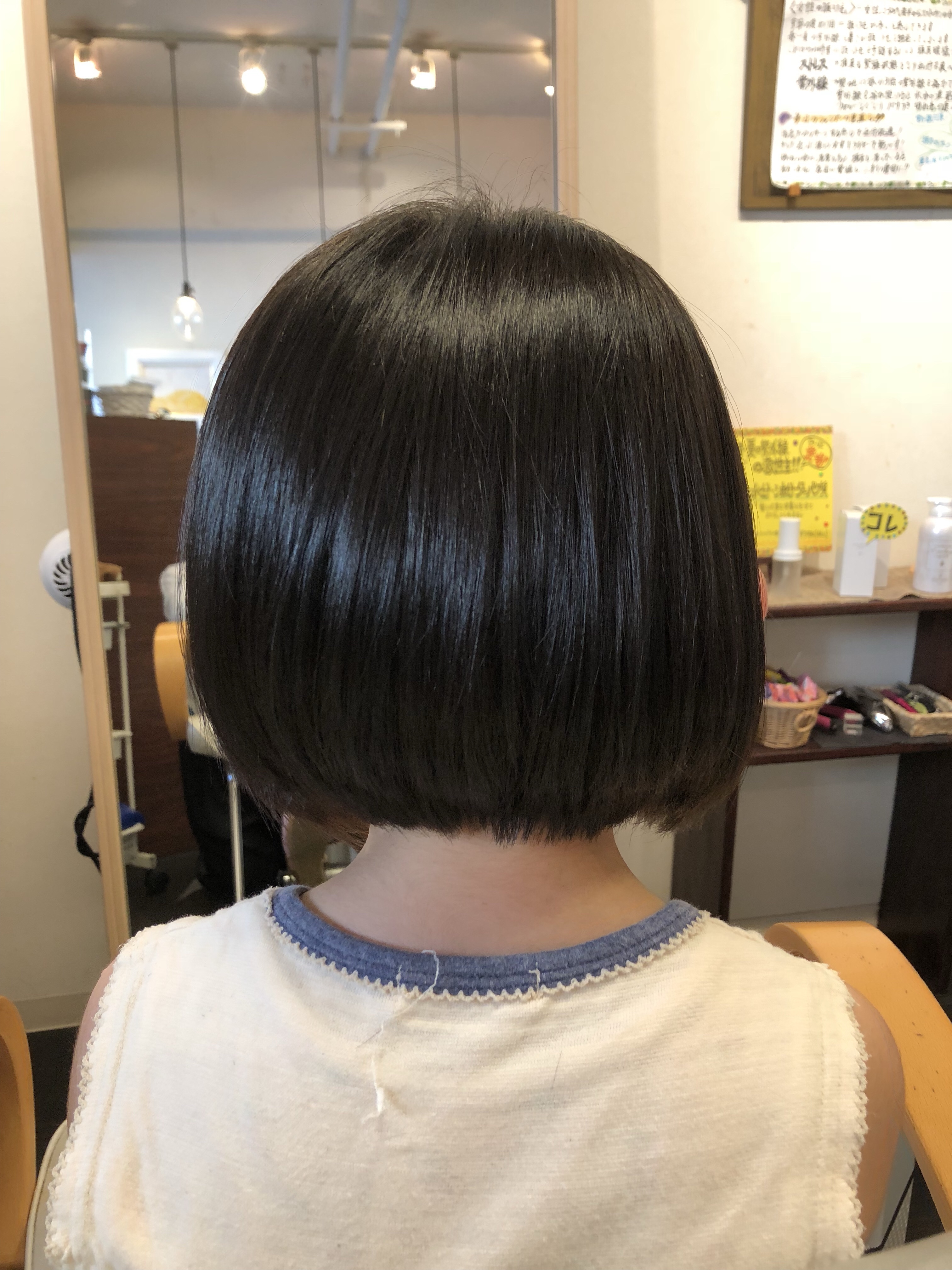 小学生の女の子がしてくれました(๑˃̵ᴗ˂̵) 襟足ギリギリになりましたが サイドは残し気味で前下がりにして 少し大人っぽくしました! ご協力ありがとうございました