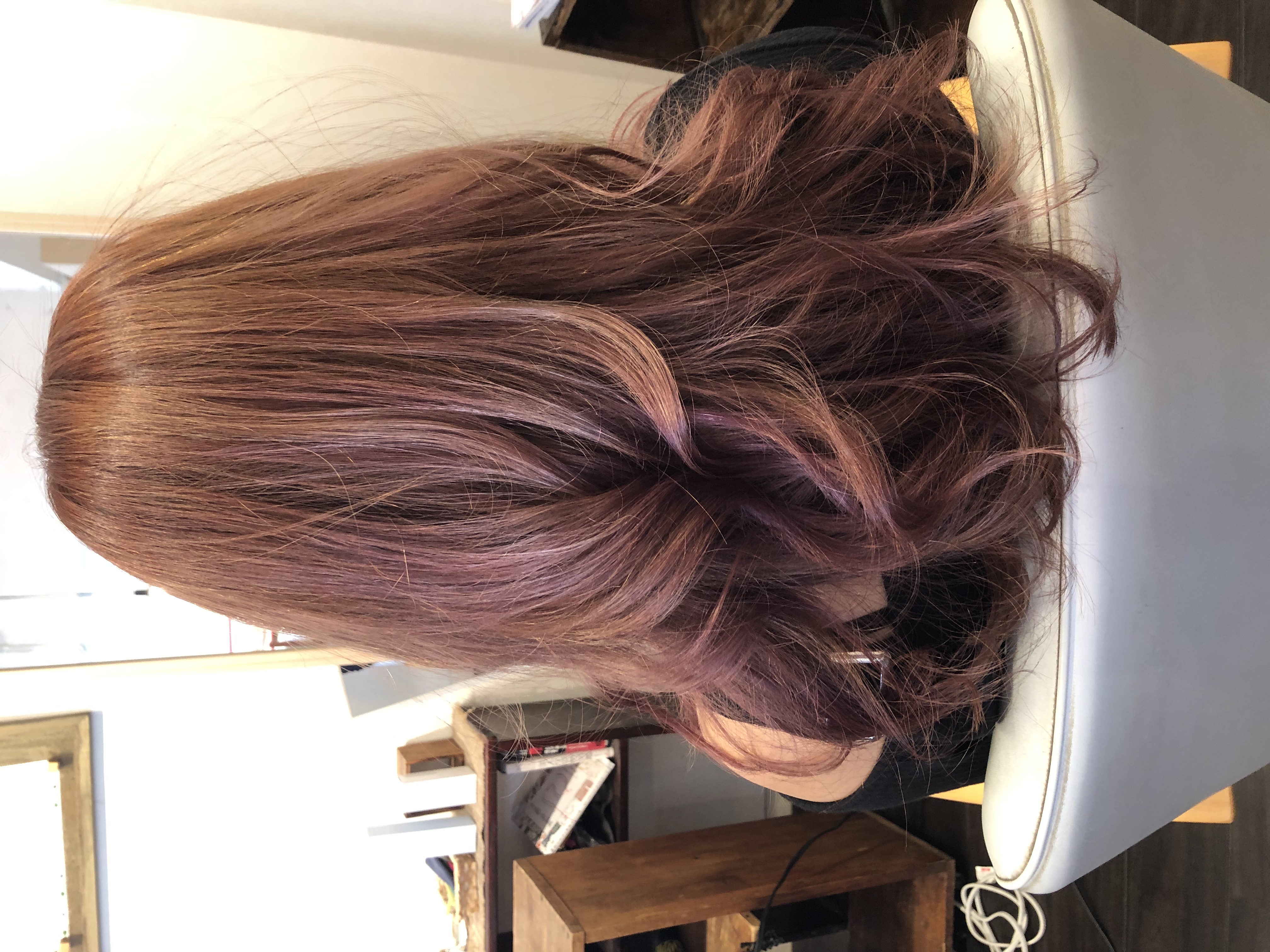 いつもはアッシュ系でカラーをしていましたが、可愛らしい感じの女の子なので やはりピンク系かなと ピンクモーブ、、、紫よりのピンクで毛先にかけて色が出る様にさせていただきました!