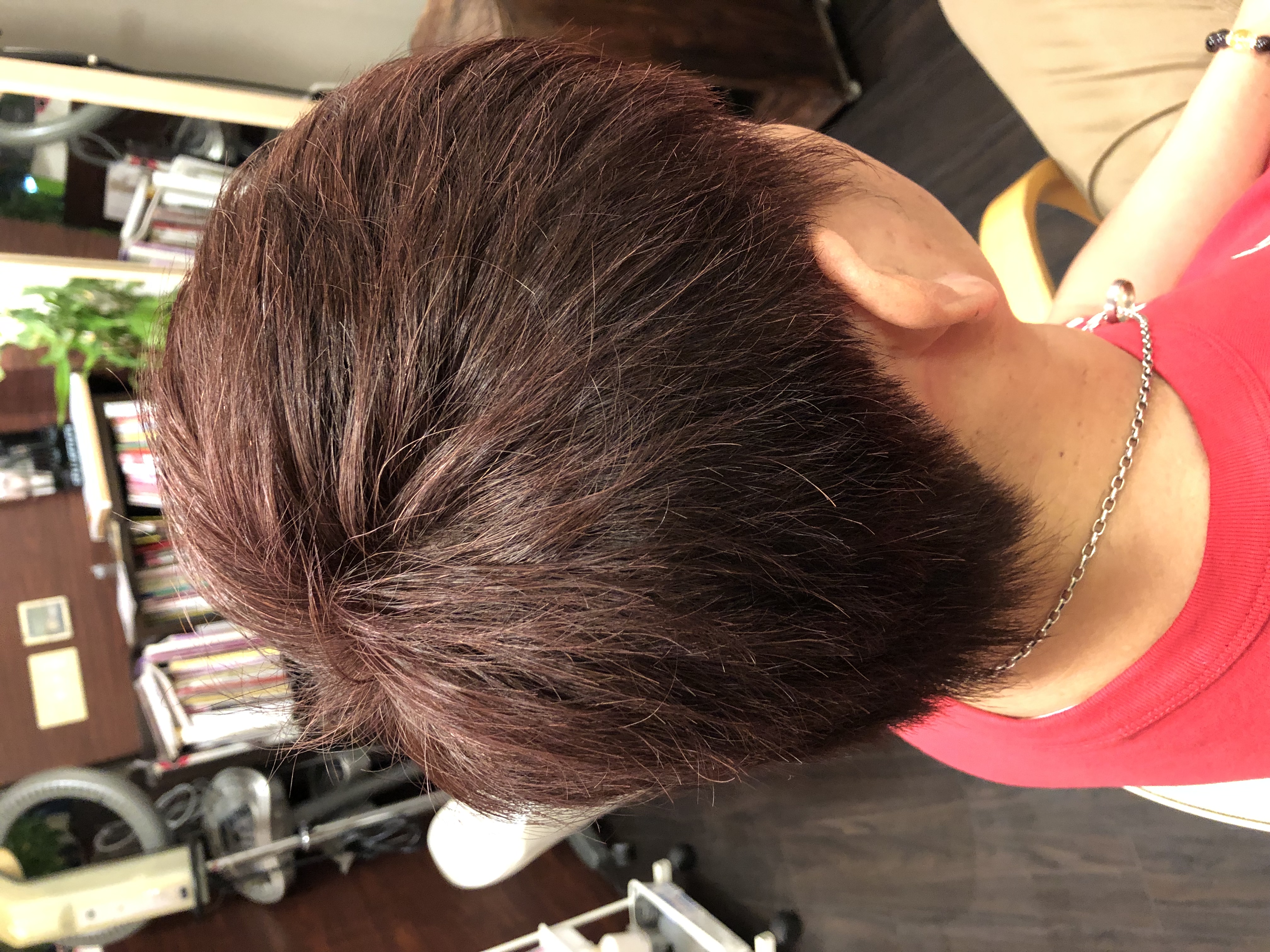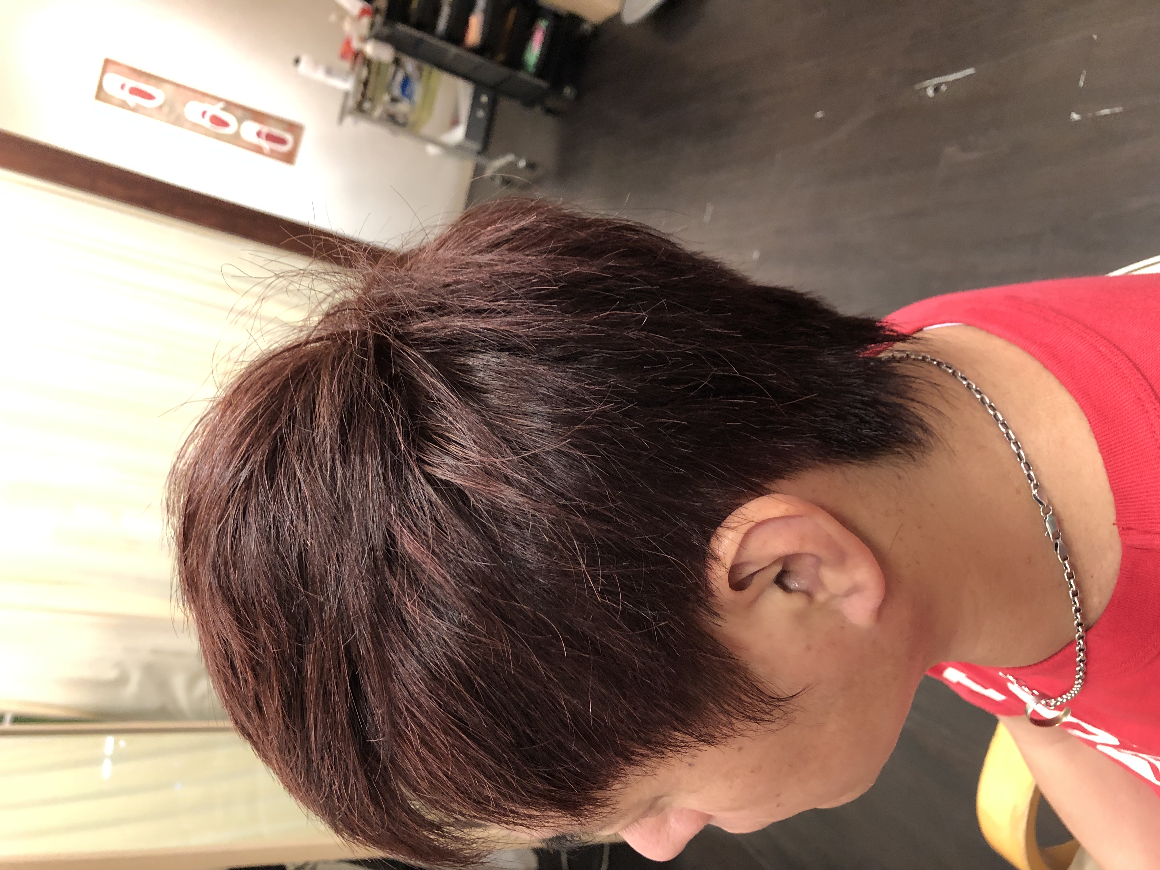 いつも深みのあるレッド系がお好きな方です 最近はピンクを強めにして 白髪もあるのですが、綺麗に発色してくれました