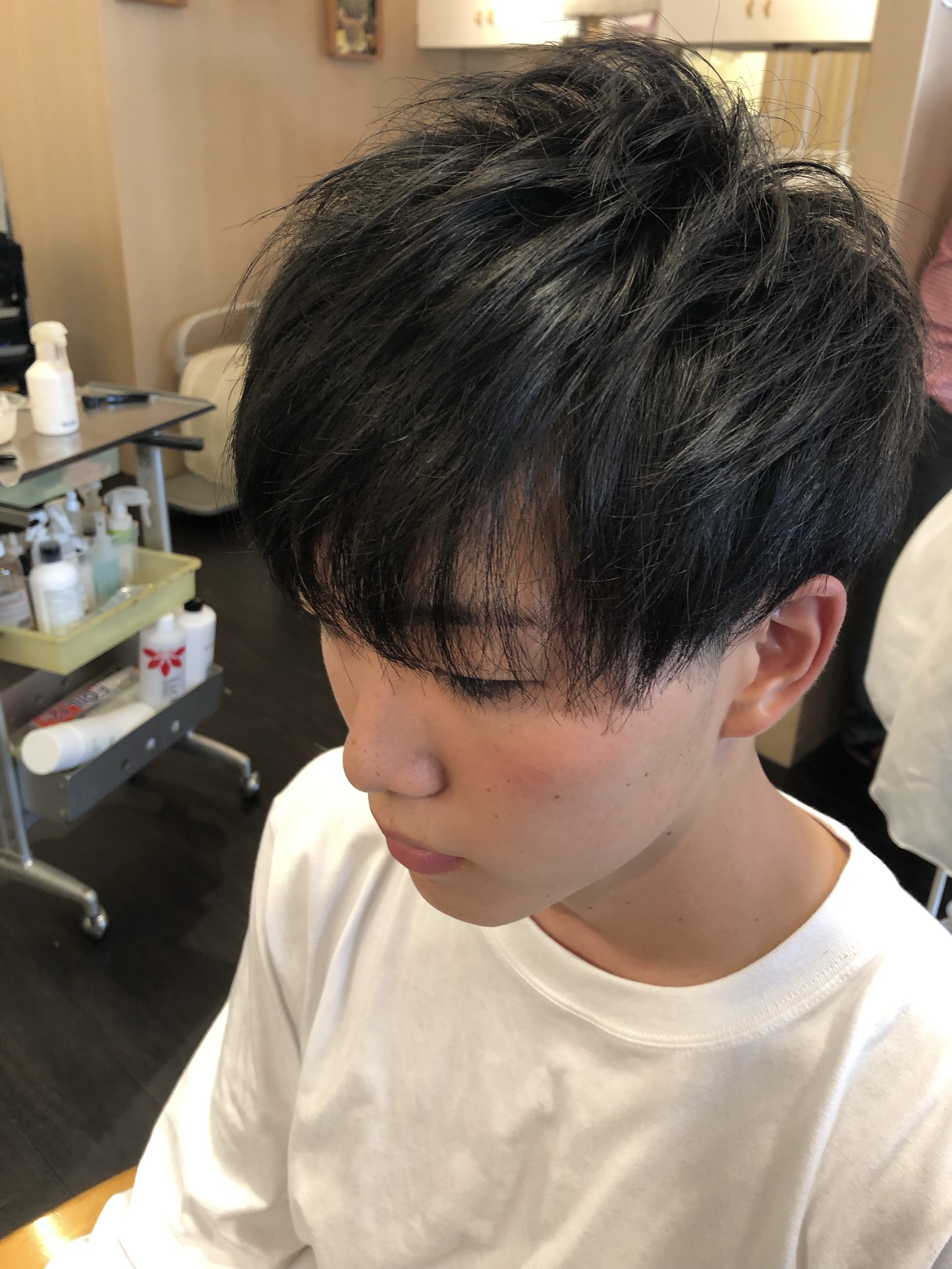 朝もしっかり仕上げてくれる高校生男子^_^ 皆、オシャレですねー 伸びるのも早いですが、、、、( ̄▽ ̄) 前髪長めのトップからは丸みを出して 動きをつける感じで