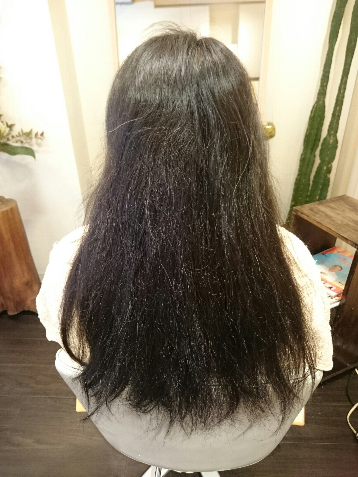 なかなか、美容室に来られる時間がなくて、一年と少したってしまってこんなに伸びていました\(^-^)/