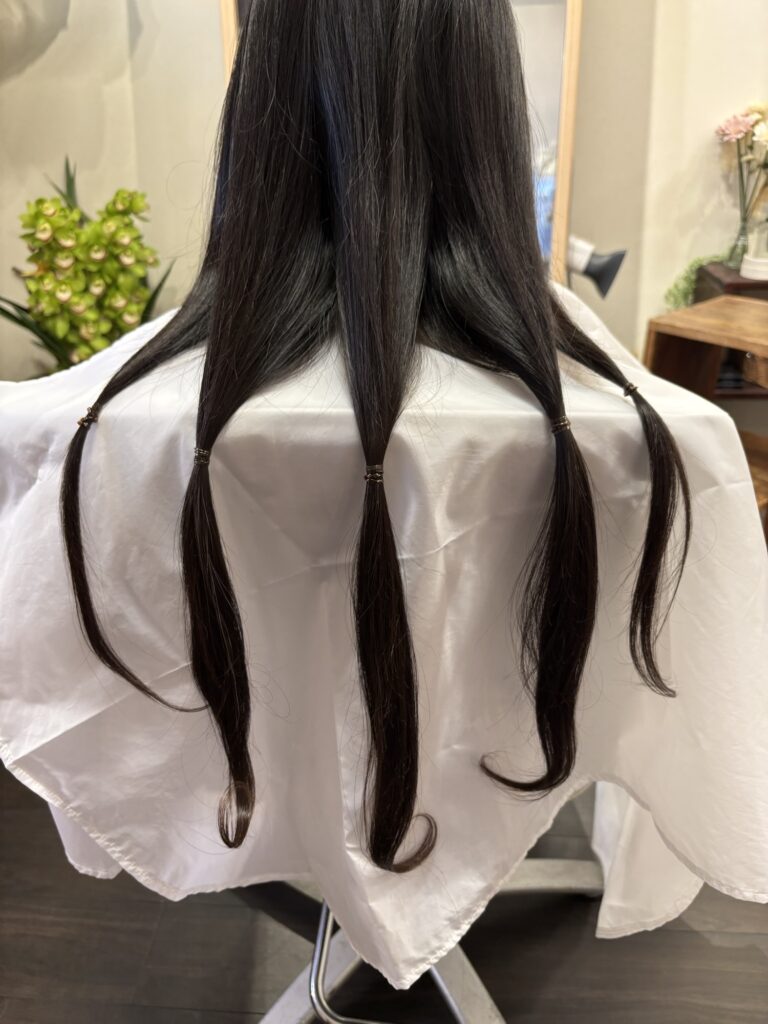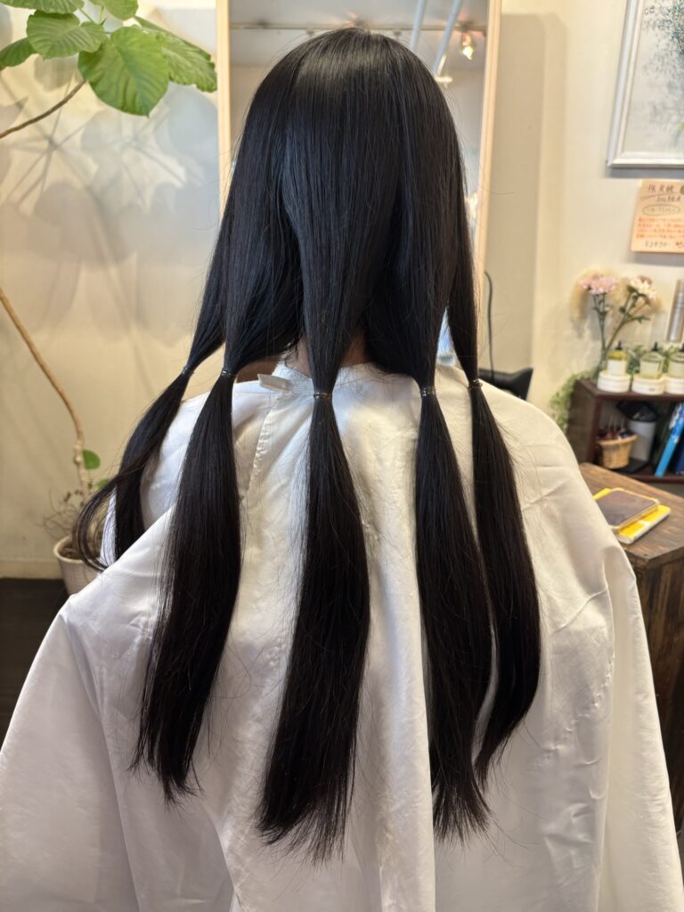 今回は小学生のお嬢様^_^ 頑張って伸ばされたそうです^ ^ あとは、ネープでシニオンを作らないといけないみたいでしたので、 31センチギリギリでカットさせて頂きました^ ^ 軽くなった〜^ ^ とお喜びでした^ ^ ありがとうございましたm(__)m