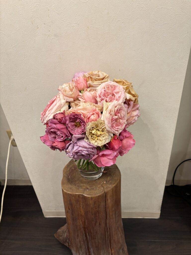 お客様のお庭に咲いているバラをプレゼントして頂きました^ ^毎年毎年ホンマに綺麗なお花ありがとうございますm(__)m 来てくださるお客様の目の保養に^ ^ ありがたいです^ ^ バラは育てるの大変だと聞きます^ ^本当にマメで、お花が大好きでいらっしゃるんでしょう^ ^ね