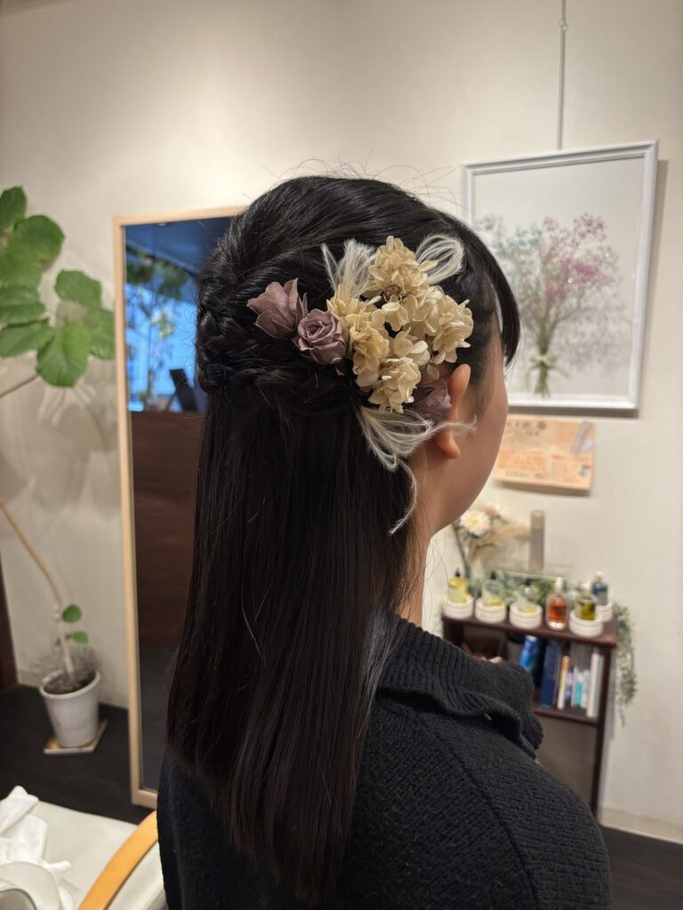 ご卒業おめでとう御座います^ ^ これからの中学生活が楽しく より良いものになりますように 微力ながら応援してます! おめでとう御座います ヘアースタイルはあまり派手派手ではなく、シンプルに綺麗なスタイルで^ ^ とてもお似合いでした^ ^