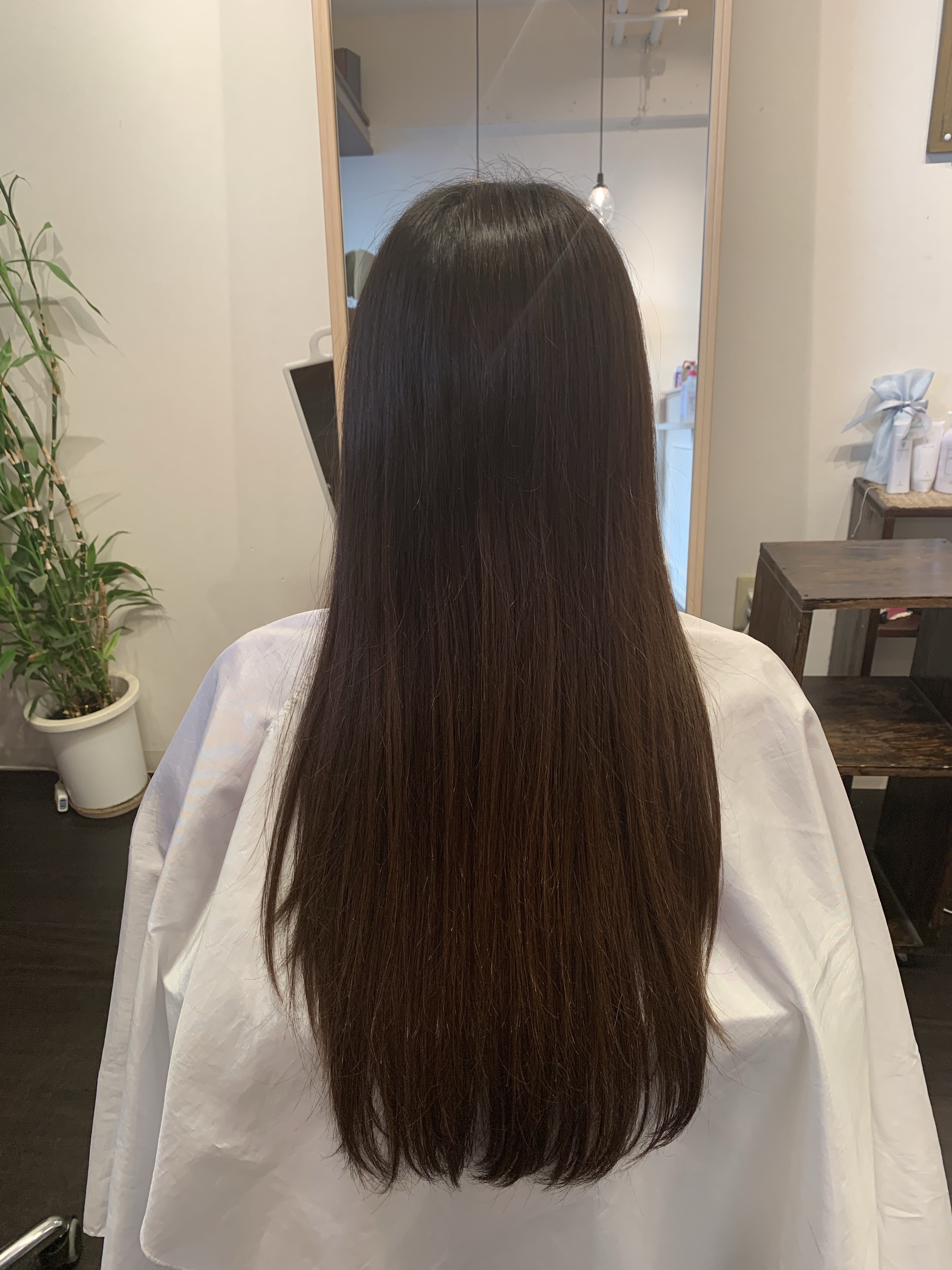 久しぶりにご来店頂き、10センチくらいはカットさせて頂きました^_^ それでもこのくらいの長さではあります! ハイライトを毛先に入れてからの アッシュ系でかけました! ブロー頑張って下さい(^○^)
