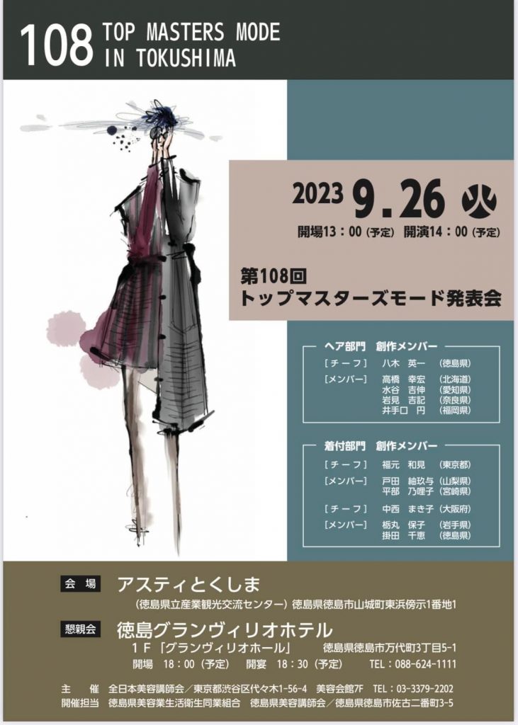 9月26日火曜日に徳島県のアスティ徳島で 日本最大級のヘアーショー&着付けショーが有ります! 店長も、毎年全国で5人選ばれるヘアースタイルの創作委員に選ばれて、参加します! 皆さん良かったら是非是非お越し下さい