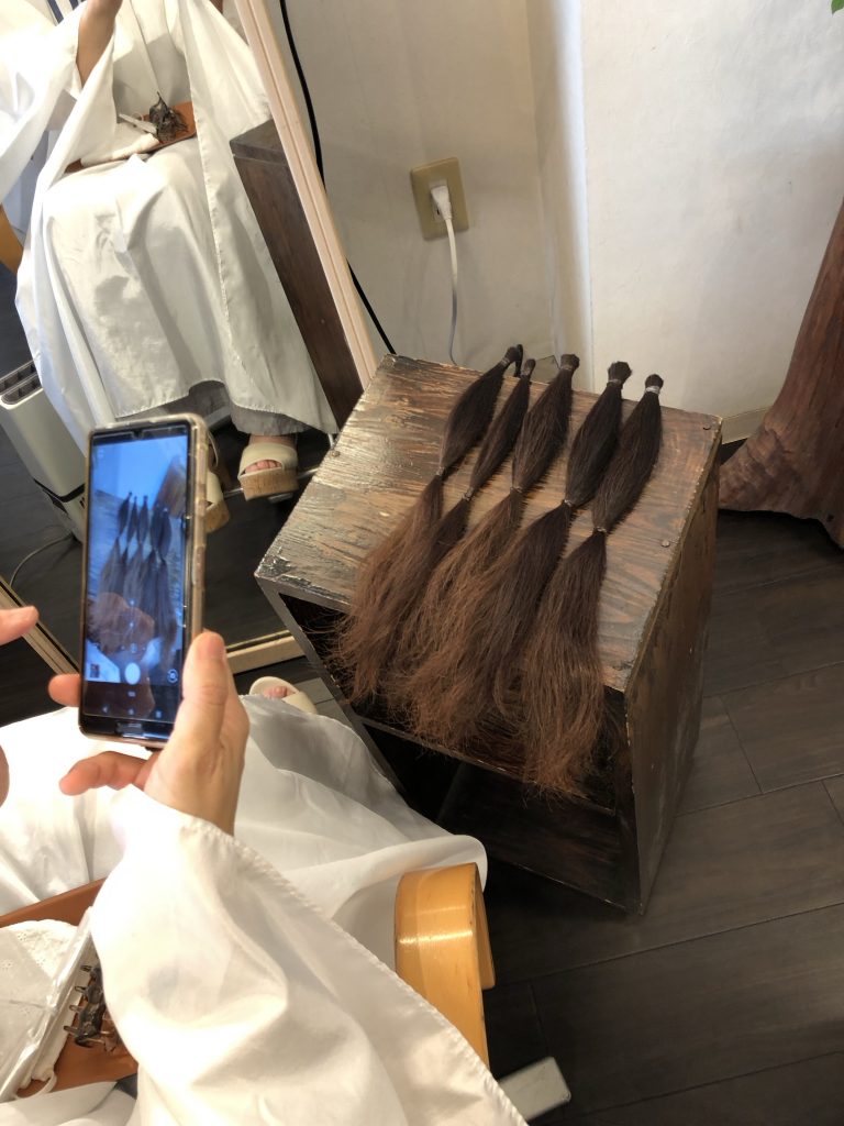 ヘアードネーションのご協力ありがとうございました^ ^ ご自身の髪を記念に写メに^ – ^ 皆さん、長い時間を掛けて伸ばされてきた髪の毛^ ^ 思いれもひとしおだと思います^ ^ 大切に次のヘアースタイルをご提案させて頂きたいと思います^ ^ ありがとうございます